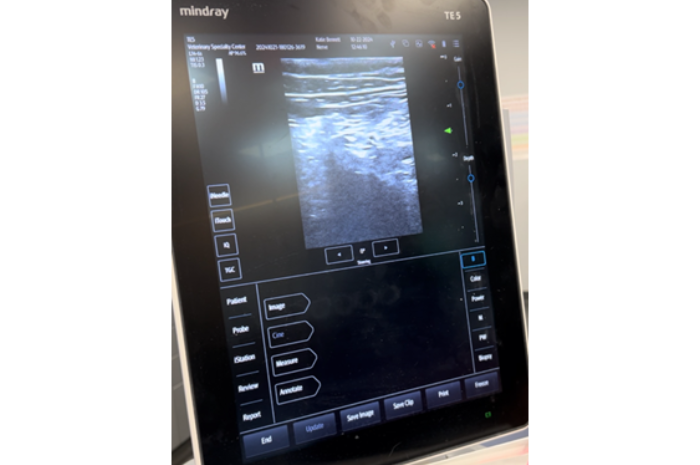 An ultrasound allows the anesthesiologist to visualize nerves and precisely deliver numbing agents, allowing the patient to be comfortable using substantially less anesthetic drug.
